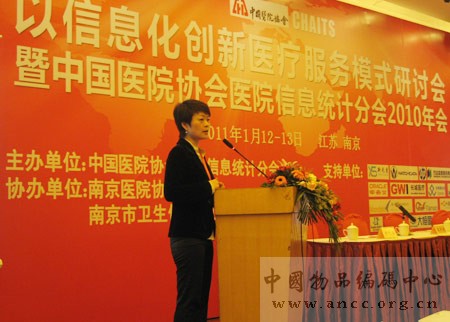 2011年1月12日—13日,“以信息化創新醫療服務模式研討會暨中國醫院協會醫院信息統計分會2010年會”在南京鳳凰臺大酒店隆重召開。此次會議由中國醫院協會醫院信息統計分會主辦,南京醫院協會和南京市衛生信息中心協辦,此次大會由主題報告“以信息化創新醫療服務模式”和“國家電子病歷項目進展”、“社區醫療信息化”、“中醫衛生信息化”等三個分論壇組成。中國醫院協會會長曹榮桂、中國醫院協會副會長、江蘇省醫院協會會長唐維新、南京市衛生局黃義龍副局長、南京醫院協會會長何忠正等領導出席了本次會議。來自醫院、行業協會、政府部門的200余名代表參加了本屆大會。中國物品編碼中心代表黃澤霞、田芮豐也受邀出席。本屆會議由衛生部信息辦副主任、中國醫院協會醫院信息統計分會主任委員高燕婕主持。