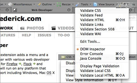 The Web Developer toolbar extension for Firefox的網(wǎng)頁開發(fā)工具條非常受歡迎,擁有很多非常棒個的功能,附加了很棒的HTML與CSS驗證工具,你可以快速的對當前瀏覽的本地文件網(wǎng)站進行驗證。他會發(fā)送URI或者文件到W3C,并在新的選項頁里面顯示驗證結果。