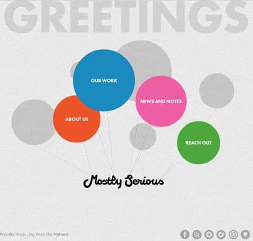 正如它的名字表明有嚴重,有嚴重嬉鬧它有一個元素。迎接你的導航被設計成左右的氣球漂浮。友好的動畫創建運動,否則靜態網站,為品牌定下了基調。雖然你可以回來的主頁,在任何階段,一個微妙的導航欄會出現在頁面底部。該網站功能,與飛濺工作室的個性樂趣。其實,它讓我想起了時髦的Flash動畫的好日子(EYE4U,任何人?),但因為這個網站應該是有點頑皮,它的工作原理以及在此背景下。