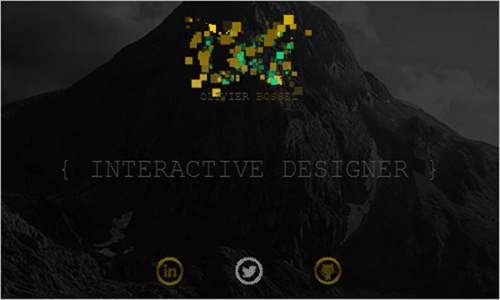 奧利維爾Bossel的投資組合,交互設計師,很有趣。導航元素創建爆炸的像素,當你將鼠標懸停在他們的效果。效果相當動態對比與其他干凈的設計。它工作得很好,因為它作為一種視覺元素鼓勵用戶繼續通過網站。一致的視覺語音和語調補充品牌的身份。只要通過瀏覽網站,用戶體驗設計師的作品。