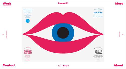 TSTO,設計機構,有一個簡單而非正統的方法來設計,它的導航不同的是我們期待什么。導航元素固定在屏幕的每個角落,劃分工作展示。創建了視覺識別與重熱粉紅色的字母,以及描述信息。層次清楚,但是,“工作”標簽的左上角,和“聯系人”和“關于”頁面底部的標簽。在保持的風格,正在展出的作品是在同一個沉重的粉紅色字體的標題。