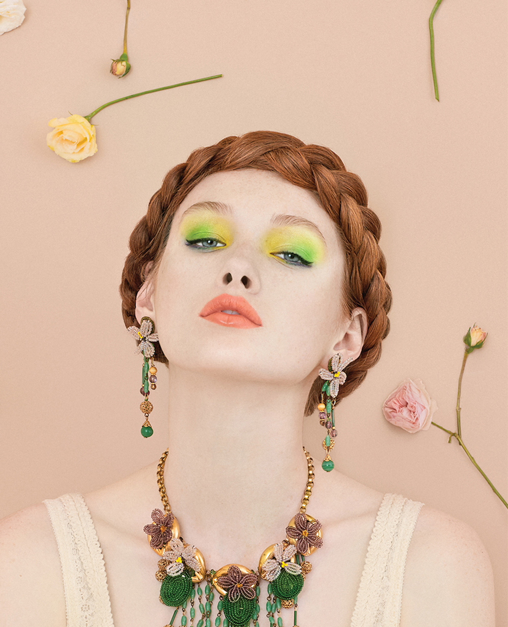 就算是服飾展示,也可以運用模特美感,選用恰當的布景設計。以體現產品本身的個性特點。這需要攝影作品里的一種獨道的敘事能力。下圖這一張攝影作品里流露出復古的華麗風尚。