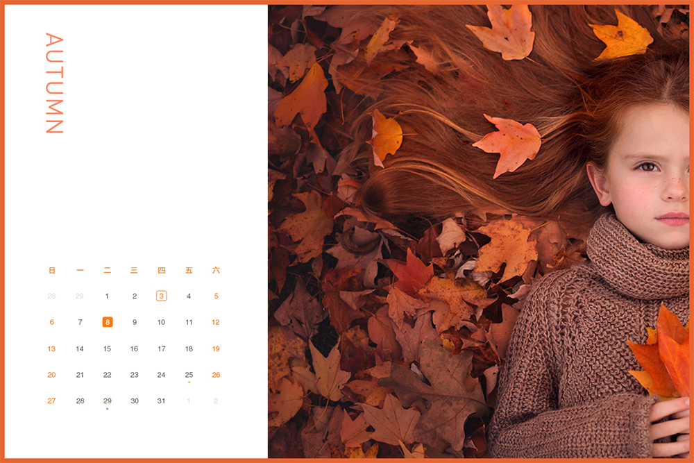 下圖照片只展示一半并不會影響我們對原始照片的判斷,照片的焦點從原來的女孩的面容轉移到了旁邊的落葉上,反而更突出了“秋天”的主題。