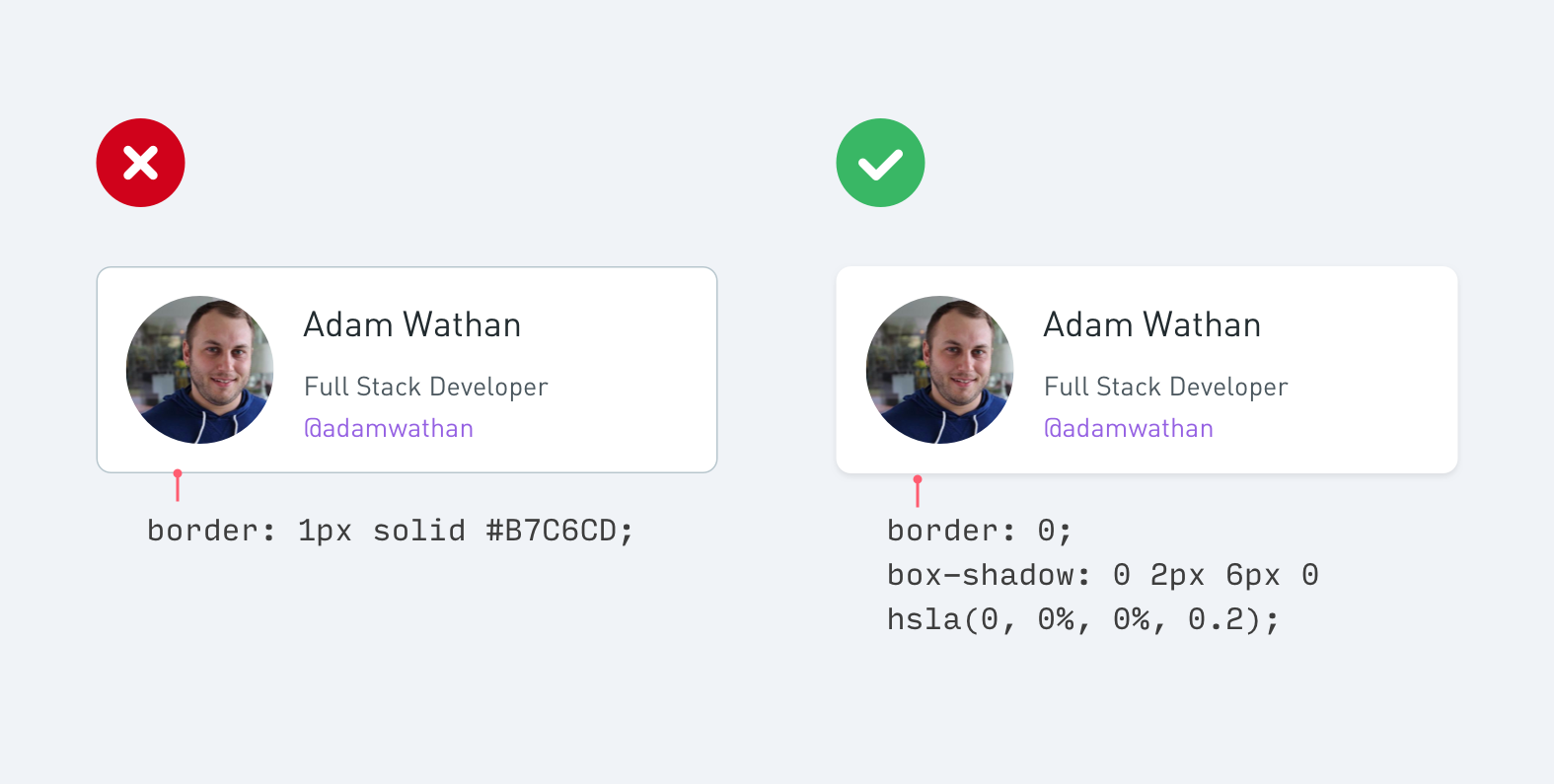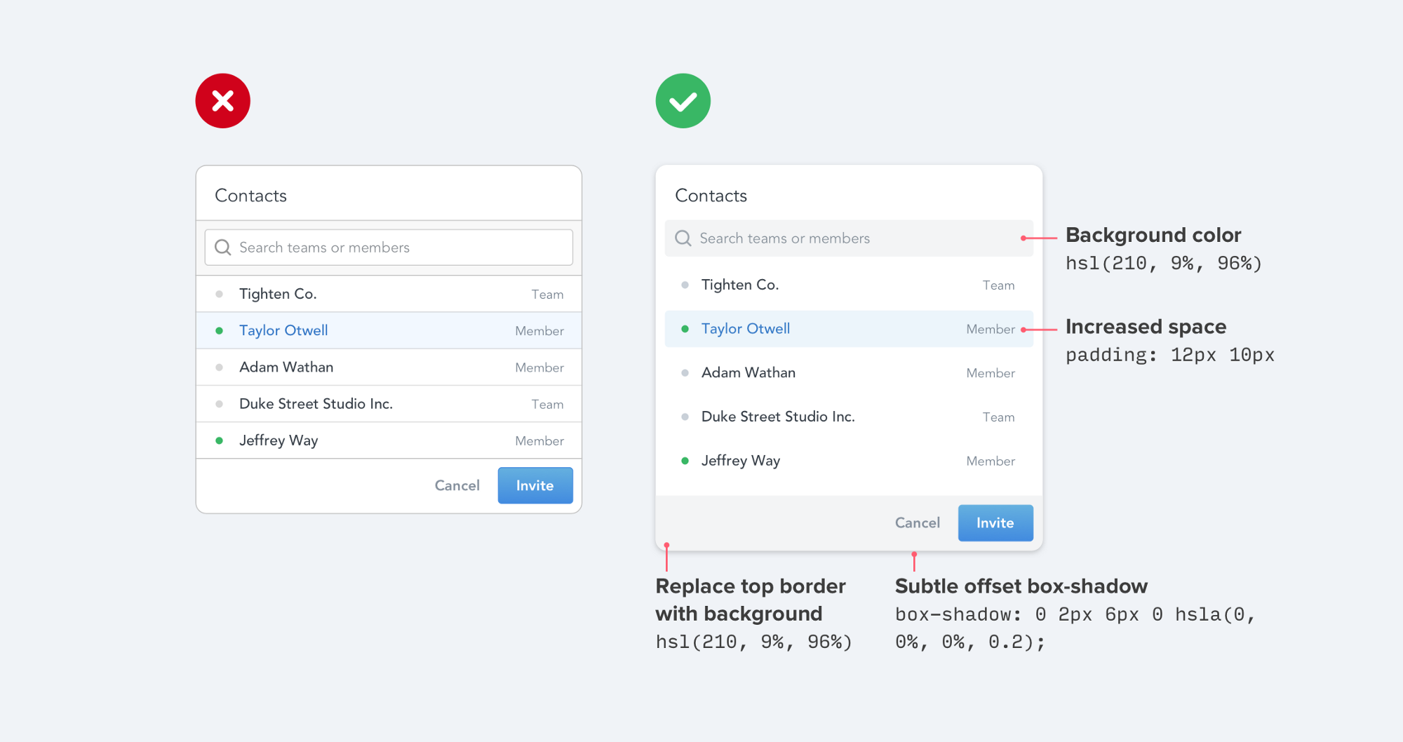雖然 Border 是分隔兩個元素的好辦法,但是它不是唯一的方法,使用過多會讓整個布局的設(shè)計感降低,甚至?xí)斐苫靵y。
