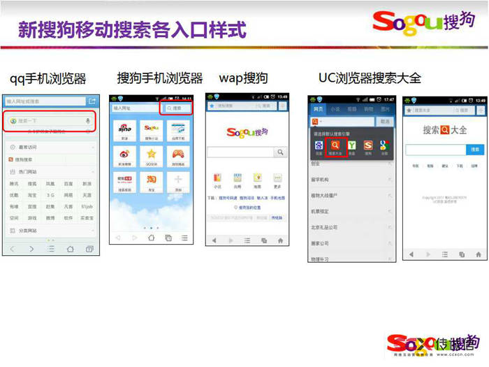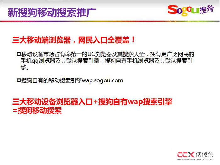三大移動(dòng)設(shè)備瀏覽器入口+搜狗自有wap搜索引擎=搜狗移動(dòng)搜索