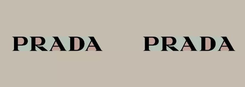 下面的 Prada 標識,黑色是字面,紅色是字懷,藍色是字的留白。
