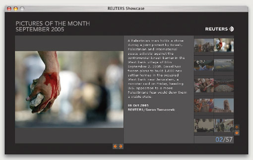 對(duì)于一些突發(fā)的重大新聞,新聞攝影師可以在很短的時(shí)間內(nèi)就抓拍到幾十張圖片。但如果沒(méi)有文字配合說(shuō)明,這些新聞圖片也就失去了意義。對(duì)于一些時(shí)效性很強(qiáng)的圖片新聞,路透社網(wǎng)頁(yè)將其說(shuō)明文字放在中間,使到每一個(gè)人都能方便快捷地閱讀。