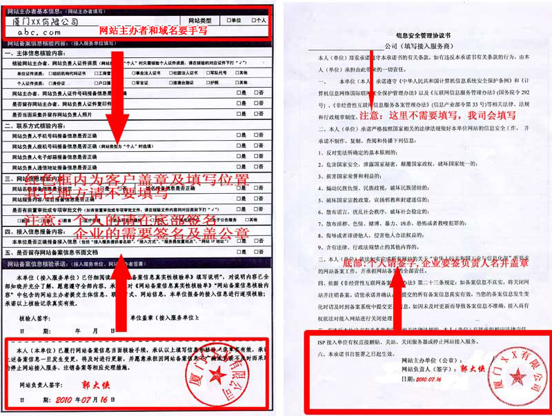 4、簽訂一式兩份《網站備案信息真實性核驗單》,核驗單需網站負責人手工簽名。