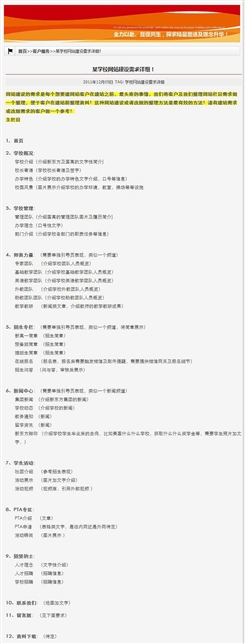 13教育類網(wǎng)站全案整理(PTA活動(dòng))PTA活動(dòng),我們特選出一個(gè)學(xué)校的案例設(shè)計(jì)小樣告知我們所做的工作有哪些,在建設(shè)前,一定要有一個(gè)詳細(xì)的欄目結(jié)構(gòu),才能便于設(shè)計(jì)人員完成以下工作!